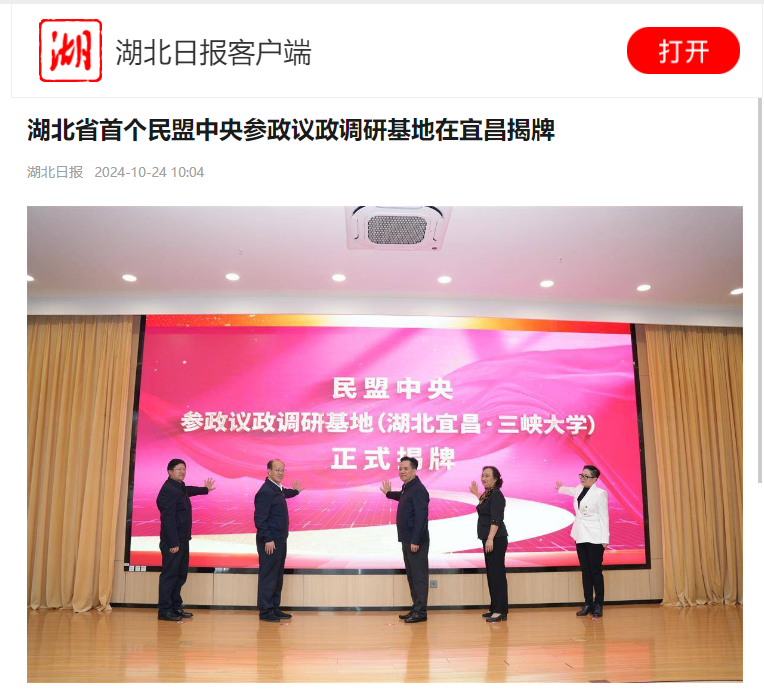 湖北日报客户端讯(记者张泽牧 、通讯员杨叶、闫红艳、赵静)10月22日,民盟中央参政议政调研基地揭牌仪式在KY开元集团官网举行。这是湖北省首个民盟中央参政议政调研基地。