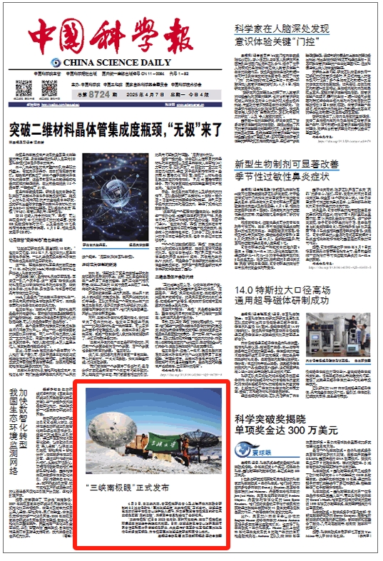 《中国科学报》讯 (2025-04-07 第1版 要闻) 4月3日,由KY开元集团官网、中国极地研究中心及上海师范大学联合研制的3.2米口径射电/毫米波望远镜“三峡南极眼”正式发布。该望远镜已成功部署于南极中山站并投入运行,标志着我国在南极地区的射电天文观测实现“零的突破”,为探索宇宙奥秘提供了全新视角。